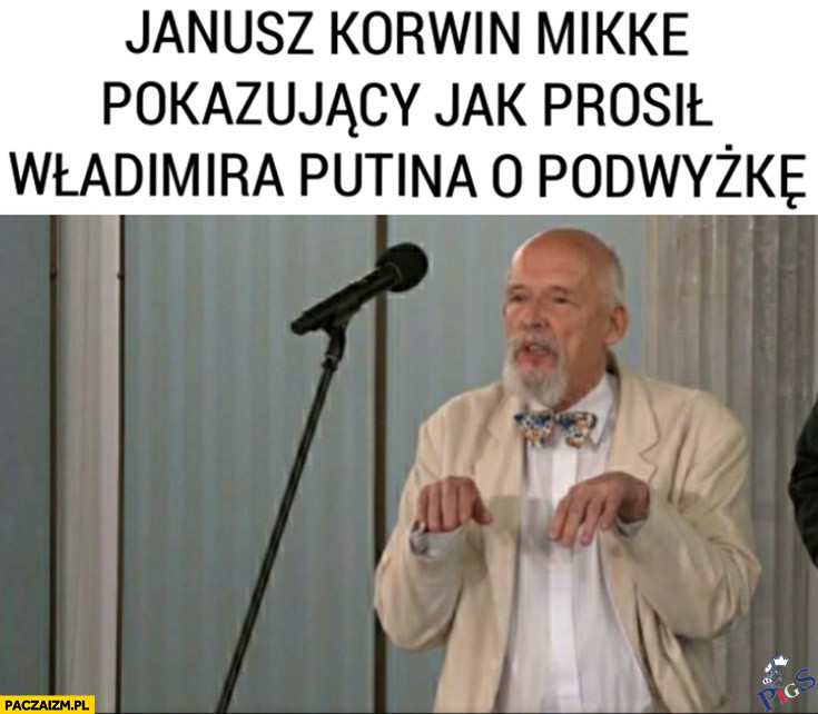Janusz Korwin Mikke pokazujący, jak prosił putina o podwyżkę 2 kwietnia 2022 Lech Główna Zabebiste100 Lewackie