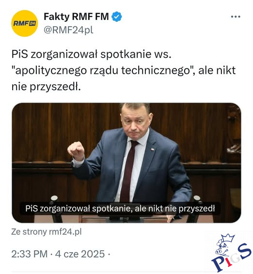PiS zorganizował spotkanie ws. _apolitycznego rządu technicznego_, ale nikt nie przyszedł 4 czerwca 2025 Professorek Główna Zabebiste110 Lewackie